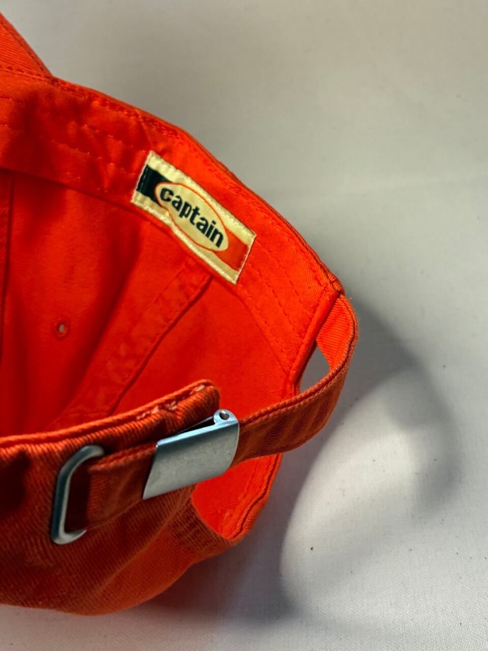 本品は、オレンジのボディに、グリーン(淵どり:ネイビー)でレター刺繍を施しています。