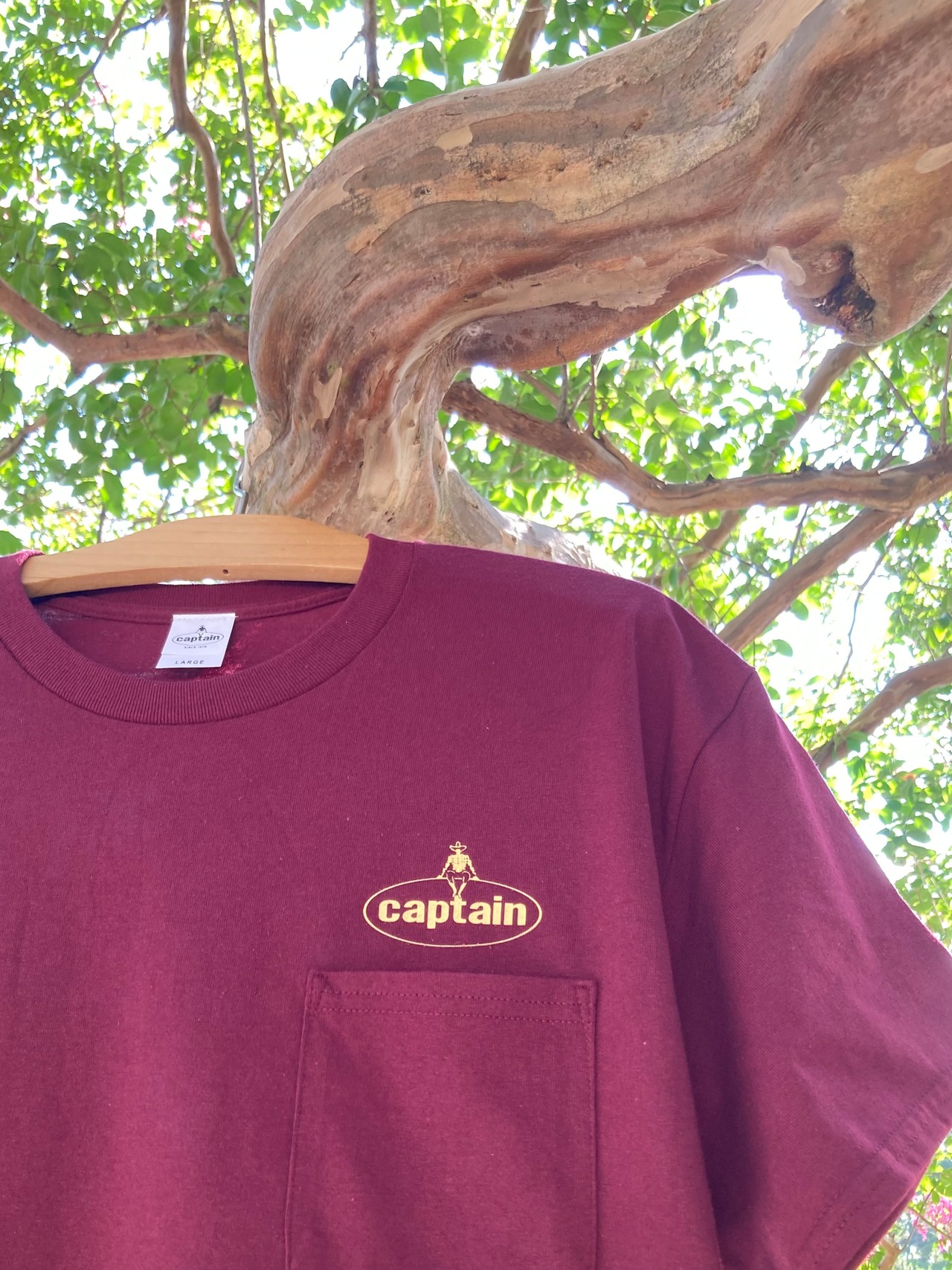 キャプテンのアイコンとも言えるオーバルデザインをバックプリントに配したポケットTeeです。